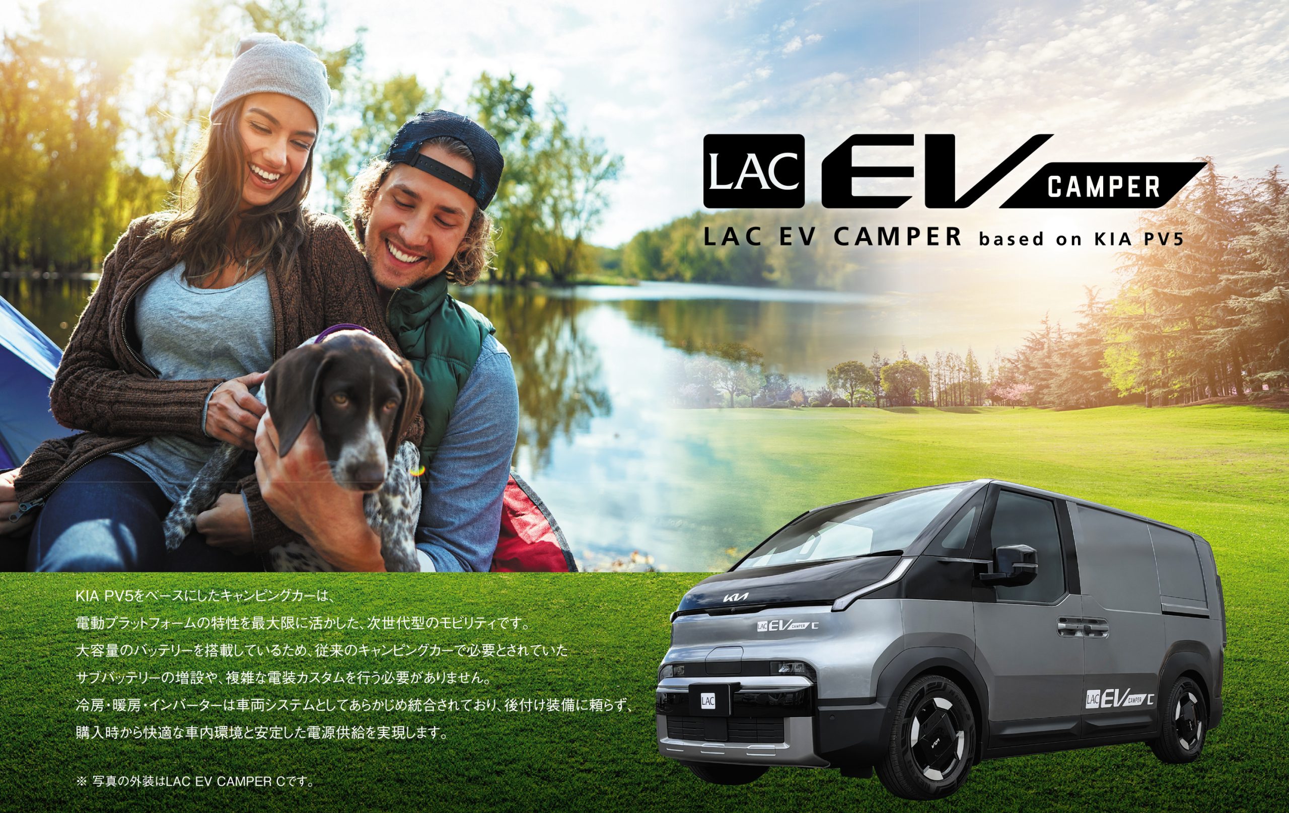 LAC EV CAMPER ラックKIA PV5ベースEVキャンパー 【EVキャンピングカー】静寂がもたらす、究極のロードトリップ体験|LAC EV CAMPER C誕生 ジャパンキャンピングカーショー2026にてお披露目展示します。ぜひ実車を見にお越しください。